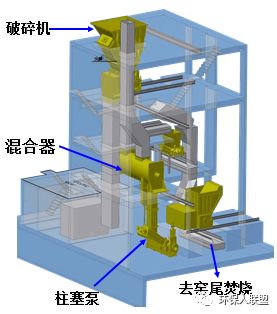 物料主要经过破碎、搅拌成浆、泵送三个预处理工艺,经由特制高压管道送入窑尾烟室进行高温处理。该系统对物料的适应能力极强,从半固态漆渣到片状金属都可由该系统处置。但此系统技术含量较高,设备需要认真选择。